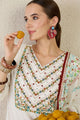 Off White & Green Printed Kurta with Trousers & Dupatta