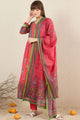 Red printed Kurta with Trousers with dupatta
