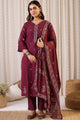 Maroon & White Printed Kurta with Trouser & Dupatta