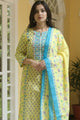 Yellow printed Kurta with Trousers with dupatta