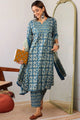 Blue printed Kurta with Trousers with dupatta