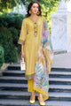 Dhiyona IE Women Ethnic Motifs Printed Regular Thread Work Linen Kurta with Trousers & With Dupatta