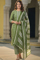 Dhiyona IE Women Ethnic Motifs Printed Regular Thread Work Pure Cotton Kurta with Trousers & With Dupatta