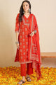 Dhiyona IE Women Ethnic Motifs Printed Regular Thread Work Pure Cotton Kurta with Trousers & With Dupatta