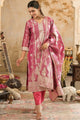 Pink & Beige Woven Design Kurta with Trousers & Dupatta