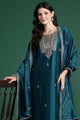 Teal Blue yoke design Kurta with Trousers with dupatta