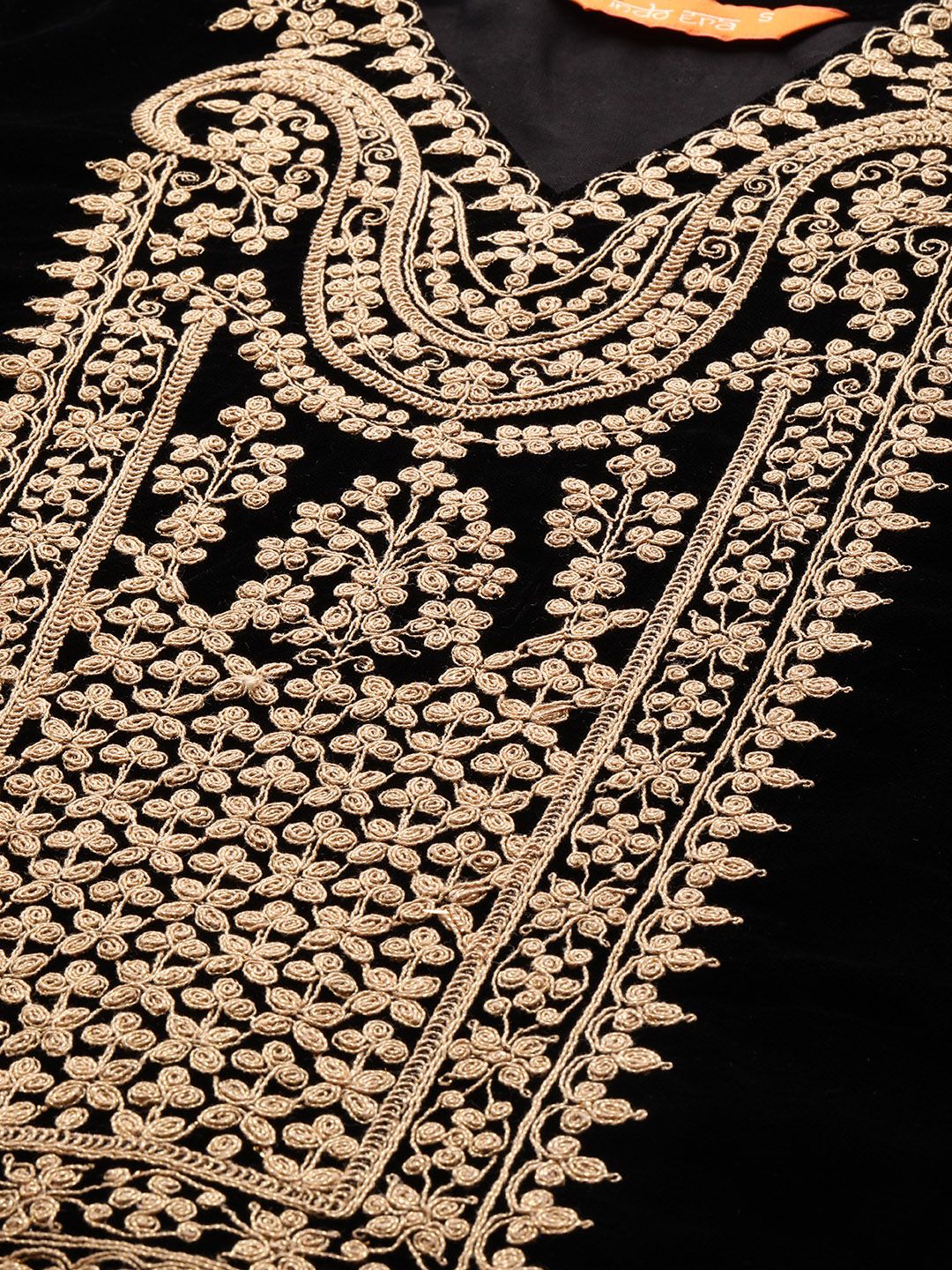 Dhiyona IE Women Ethnic Motifs Yoke Design Regular Velvet Kurta with Trousers & Dupatta