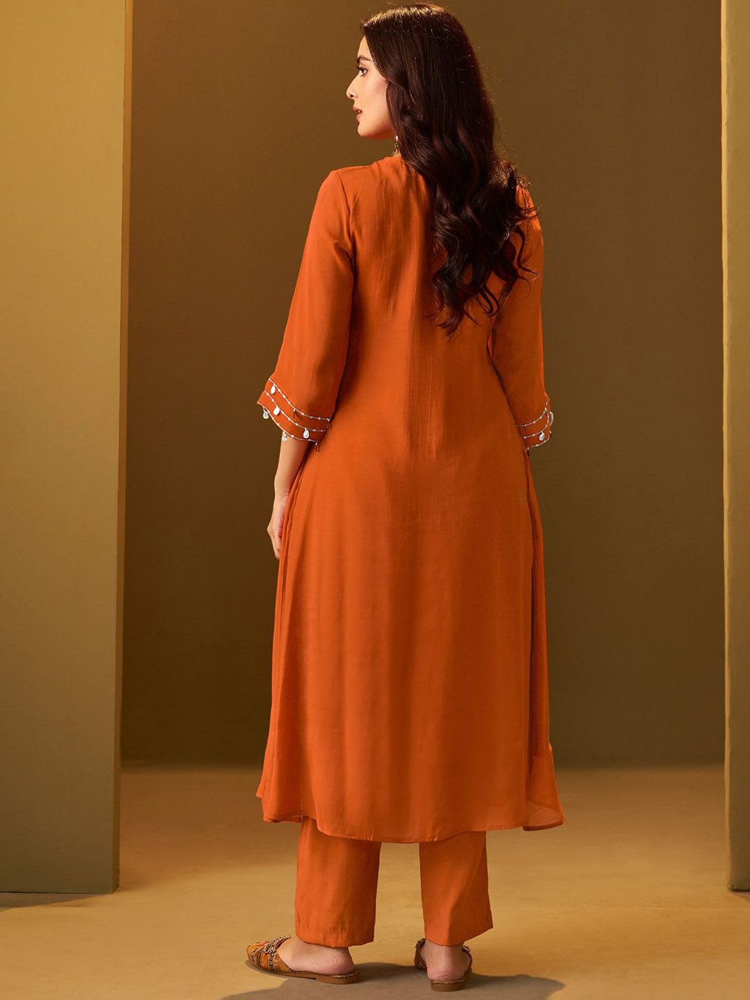 Indo Era Orange Embroidered A-Line Co-Ords Set