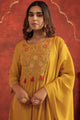 Mustard & Red Embroidered Kurta with Trousers & Dupatta