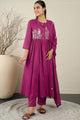 Purple, White, Green Embroidered Kurta with Trousers & Dupatta