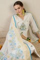 White, Blue, Yellow Embroidered Kurta with Trousers & Dupatta