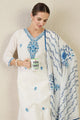White & Blue Embroidered Kurta with Trousers & Dupatta