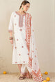 White & Brown Embroidered Kurta with Trousers & Dupatta