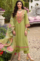 Green & Pink Embroidered Kurta with Trousers & Dupatta