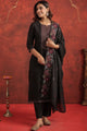 Black & Charcoal Embroidered Kurta with Trousers & Dupatta