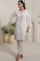 Off White, Pink, Silver Embroidered Kurta with Palazzos