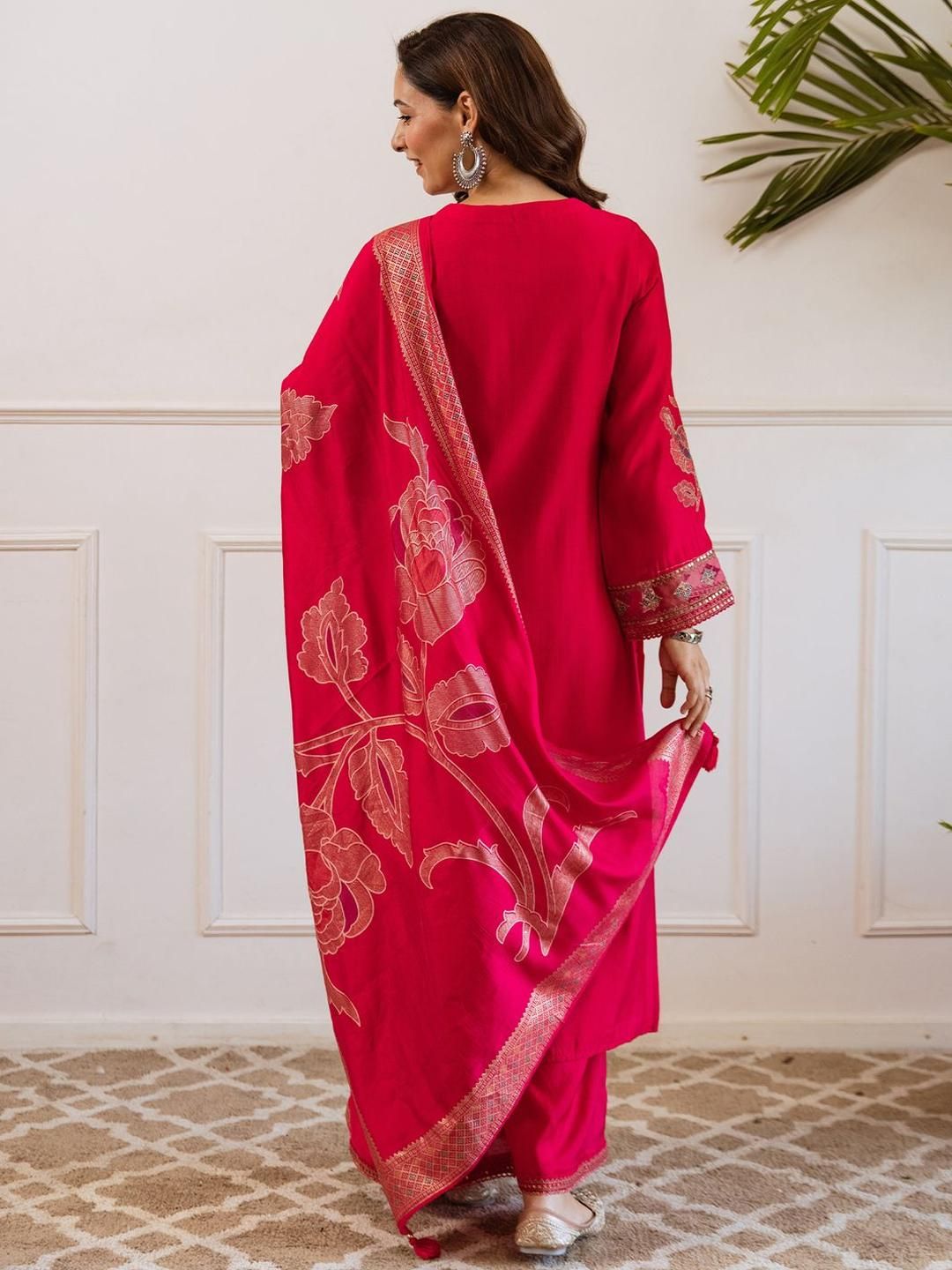 Dhiyona IE Women Floral Embroidered Kurta with Sharara & Dupatta
