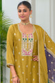 Mustard, Pink, Green Embroidered Kurta with Trousers