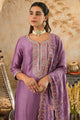 Lavender, Orange, Gold Embroidered Kurta with Trousers & Dupatta