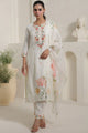 Off White, Pink, Green Embroidered Kurta with Trousers & Dupatta