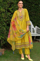 Yellow, Green, Pink Embroidered Kurta with Trousers & Dupatta