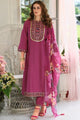 Pink, Gold, Blue Embroidered Kurta with Trousers & Dupatta