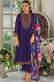 Purple, Yellow, Pink Embroidered Kurta with Trousers & Dupatta