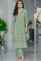 Sea Green & Pink Embroidered Kurta with Trousers & Dupatta