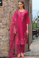 Pink, Beige, Green Embroidered Kurta with Trousers & Dupatta
