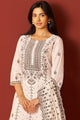 White & Black Embroidered Kurta with Trousers & Dupatta