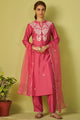 Pink & White Embroidered Kurta with Trousers & Dupatta