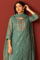 Green & Pink Embroidered Kurta with Trousers & Dupatta
