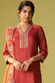 Rust & Gold Embroidered Kurta with Trousers & Dupatta