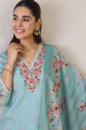 Dhiyona IE Women Floral Embroidered Linen Kurta with Trousers & Dupatta