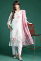 Dhiyona IE Women Floral Embroidered Panelled Thread Work Kurta With Trousers & Dupatta