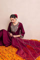 Burgundy embroidered Kurta with Palazzos with dupatta