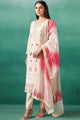 Cream-coloured embroidered Kurta with Trousers with dupatta