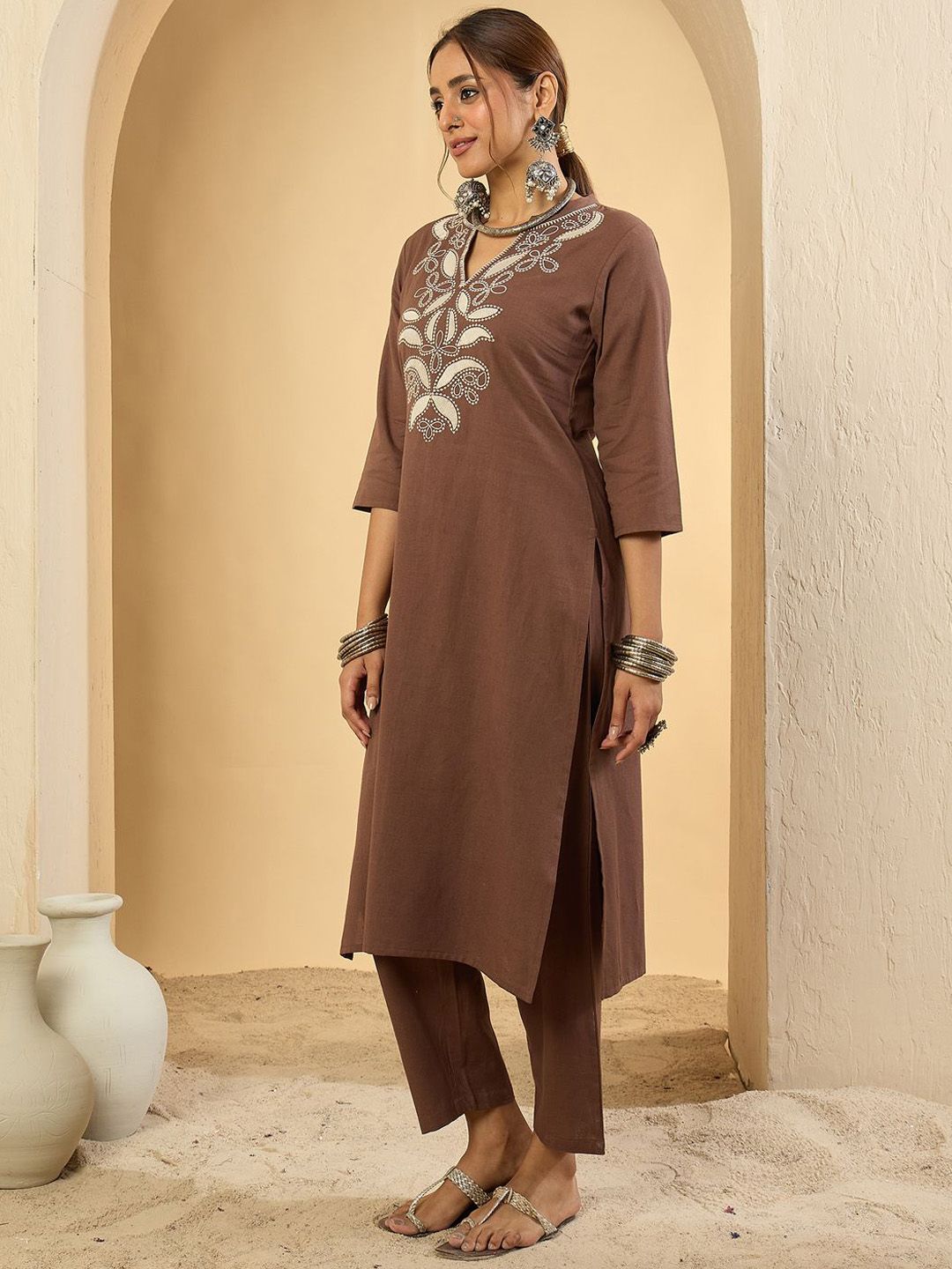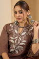 Brown embroidered Kurta with Trousers
