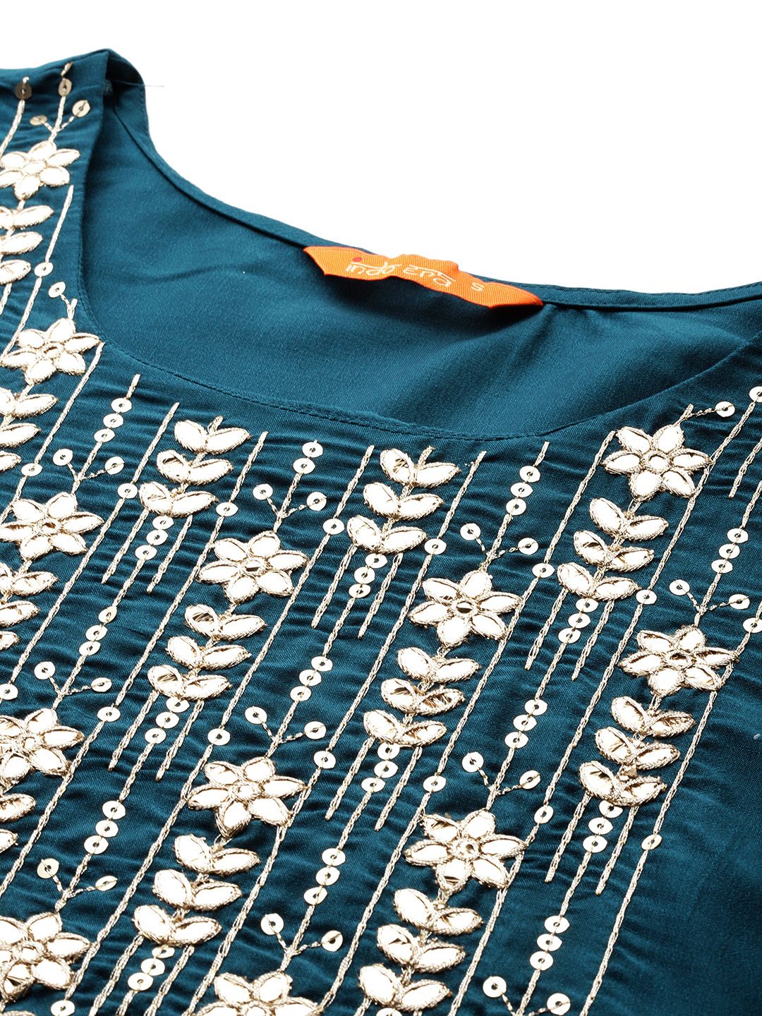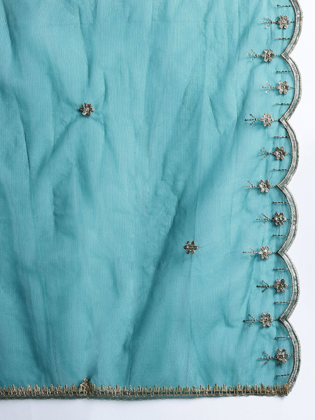 Dhiyona IE Women Floral Embroidered Regular Sequinned Kurta with Trousers & With Dupatta