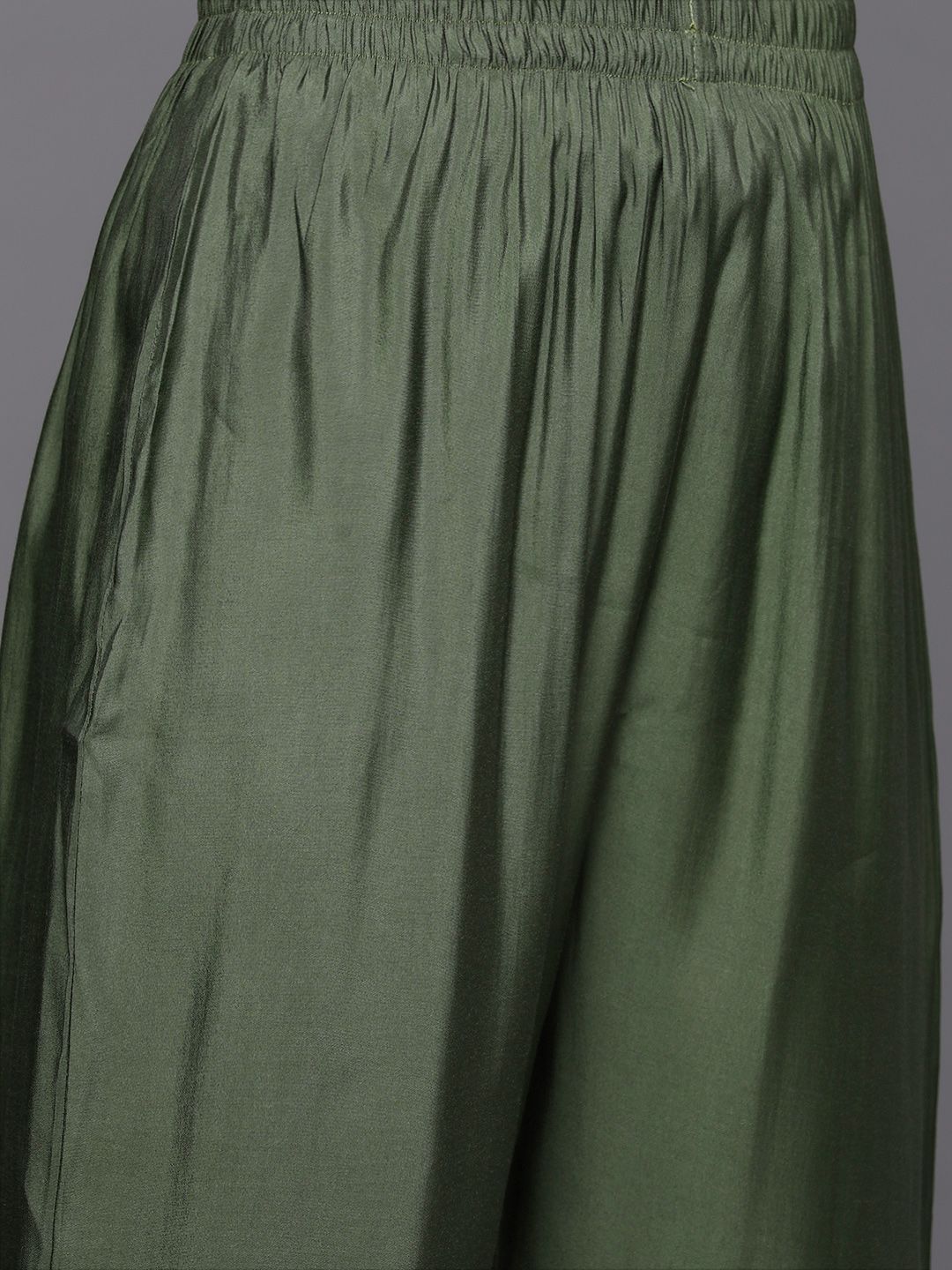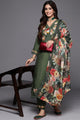 Olive green embroidered Kurta with Trousers with Organzadupatta