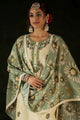 Cream-coloured embroidered Kurta with Trousers with dupatta