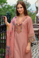 Peach-coloured embroidered Kurta with Trousers with dupatta
