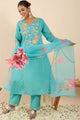 Turquoise blue embroidered Kurta with Trousers with dupatta