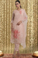 Peach-coloured embroidered Kurta with Trousers with dupatta