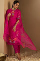 Magenta embroidered Kurta with Trousers with dupatta