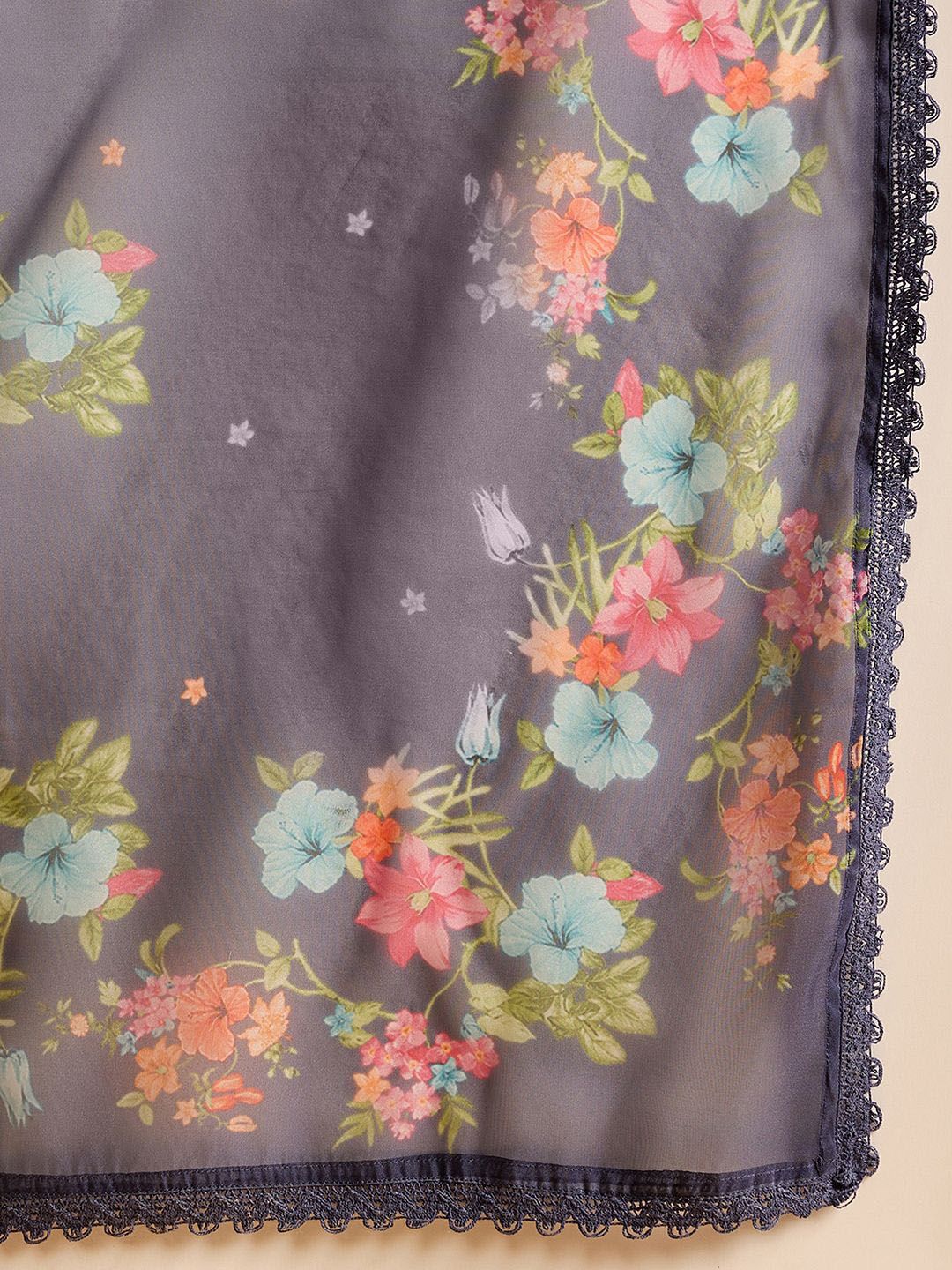 Dhiyona IE Women Floral Embroidered Regular Thread Work Kurta with Trousers & With Dupatta