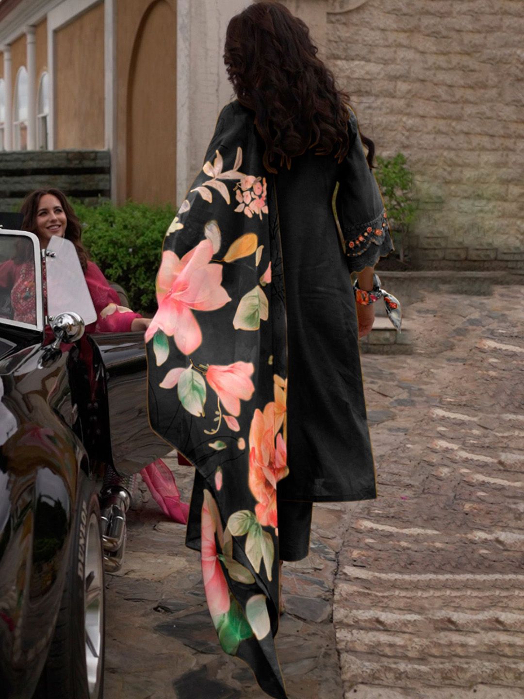 Dhiyona IE Women Floral Embroidered Regular Thread Work Kurta with Trousers & With Dupatta