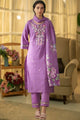 Purple embroidered Kurta with Trousers with dupatta
