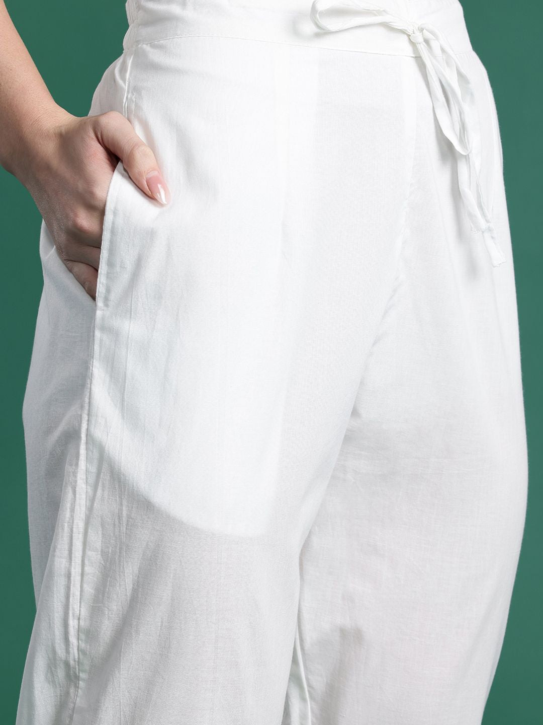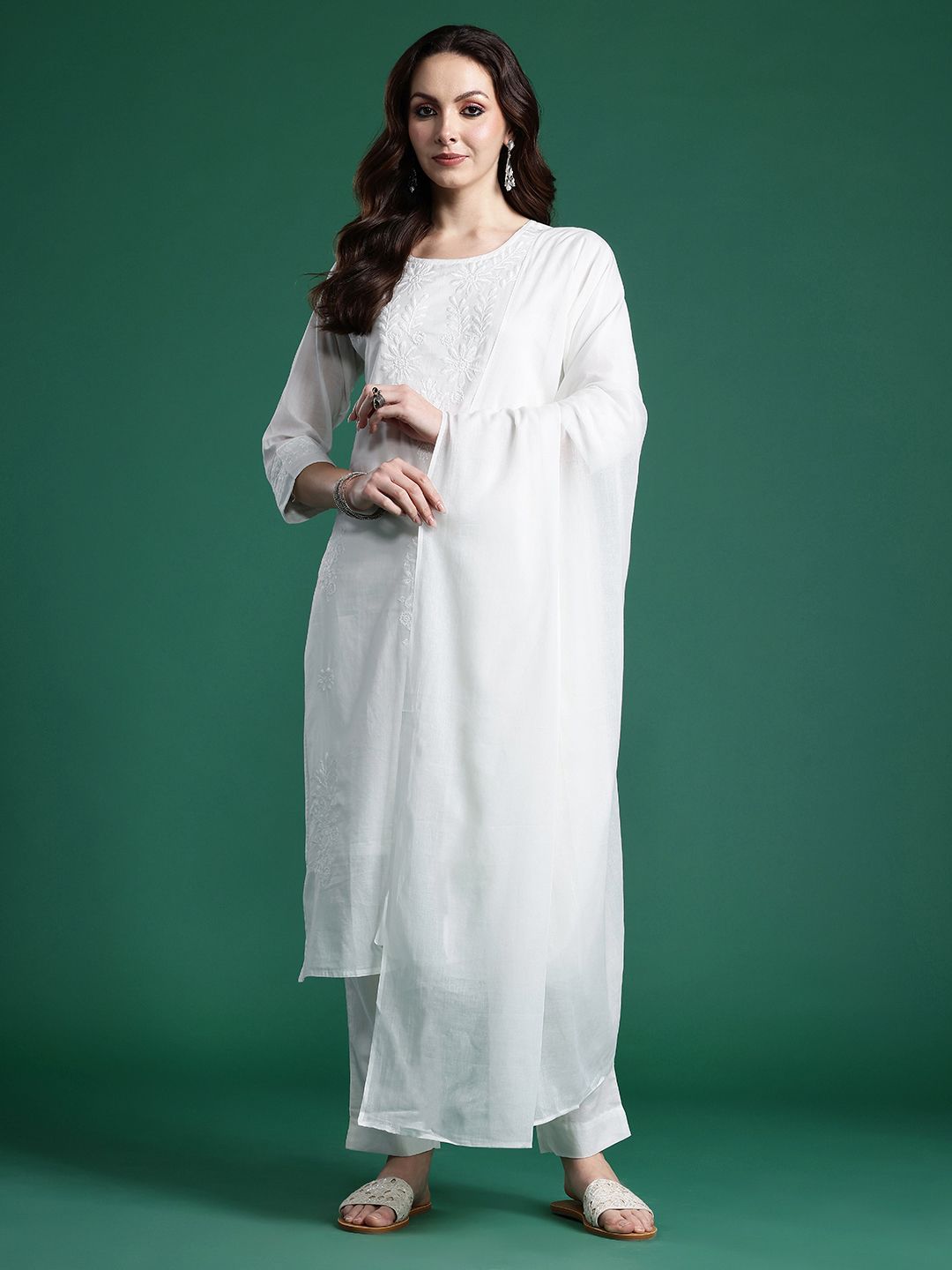 Dhiyona IE Women Floral Embroidered Regular Thread Work Pure Cotton Kurta with Trousers & With Dupatta