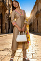 Dhiyona IE Women Floral Embroidered Regular Thread Work Raw Silk Kurta with Trousers & With Dupatta